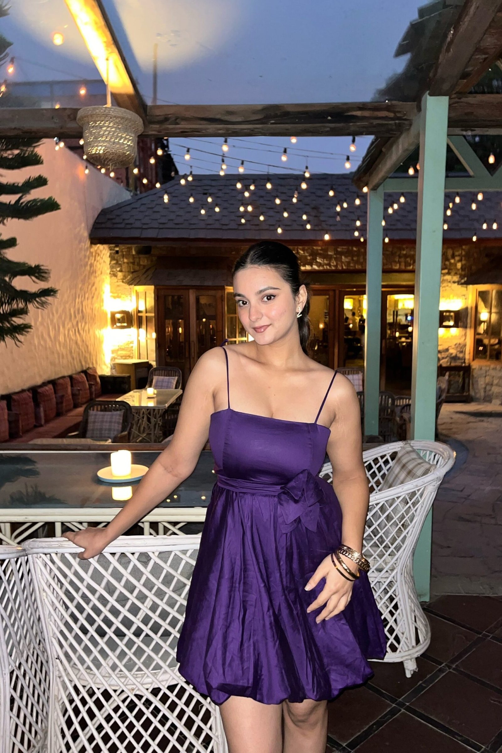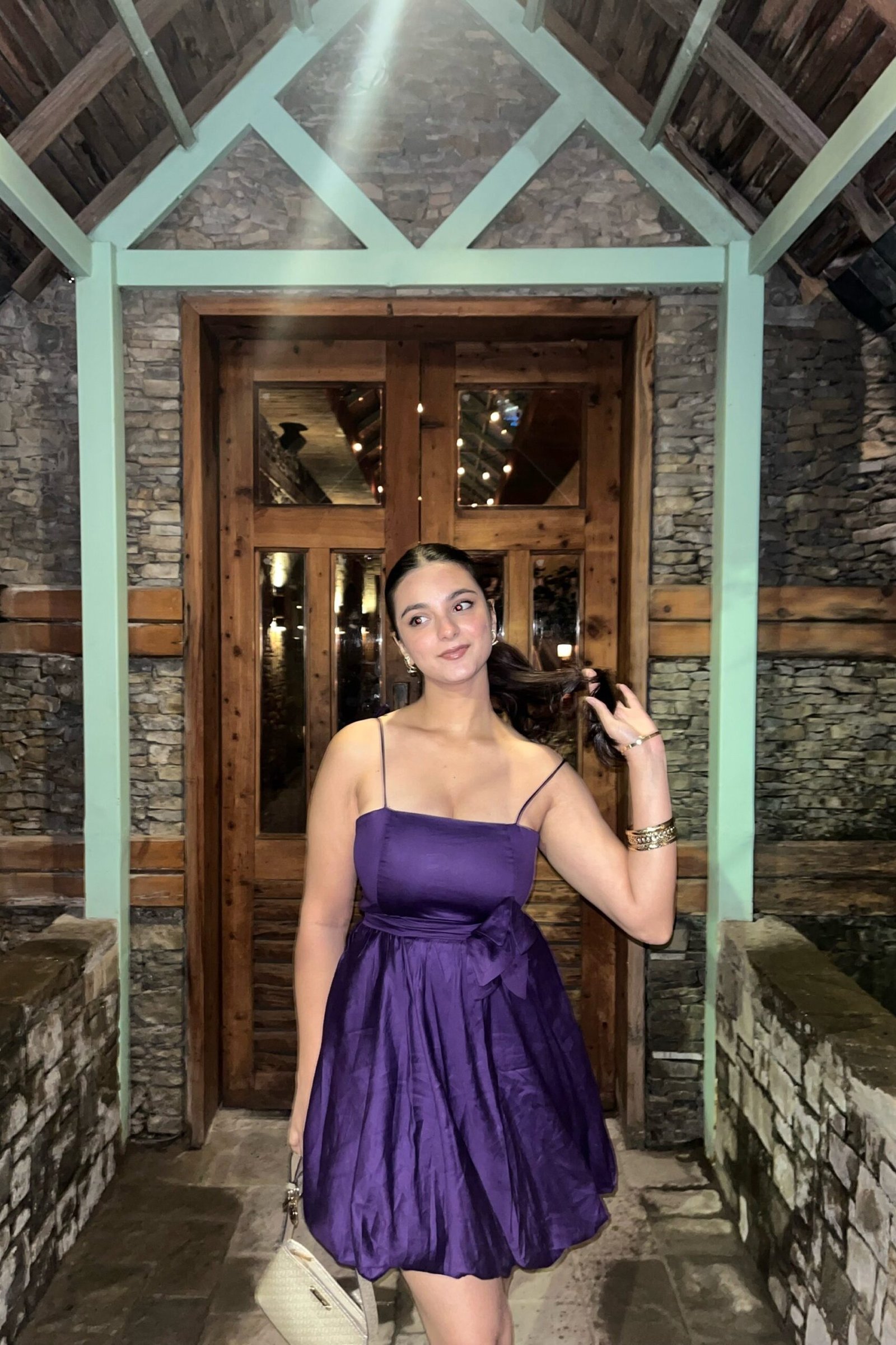 This balloon purple dress is the most comfy yet stylish pick of the season.