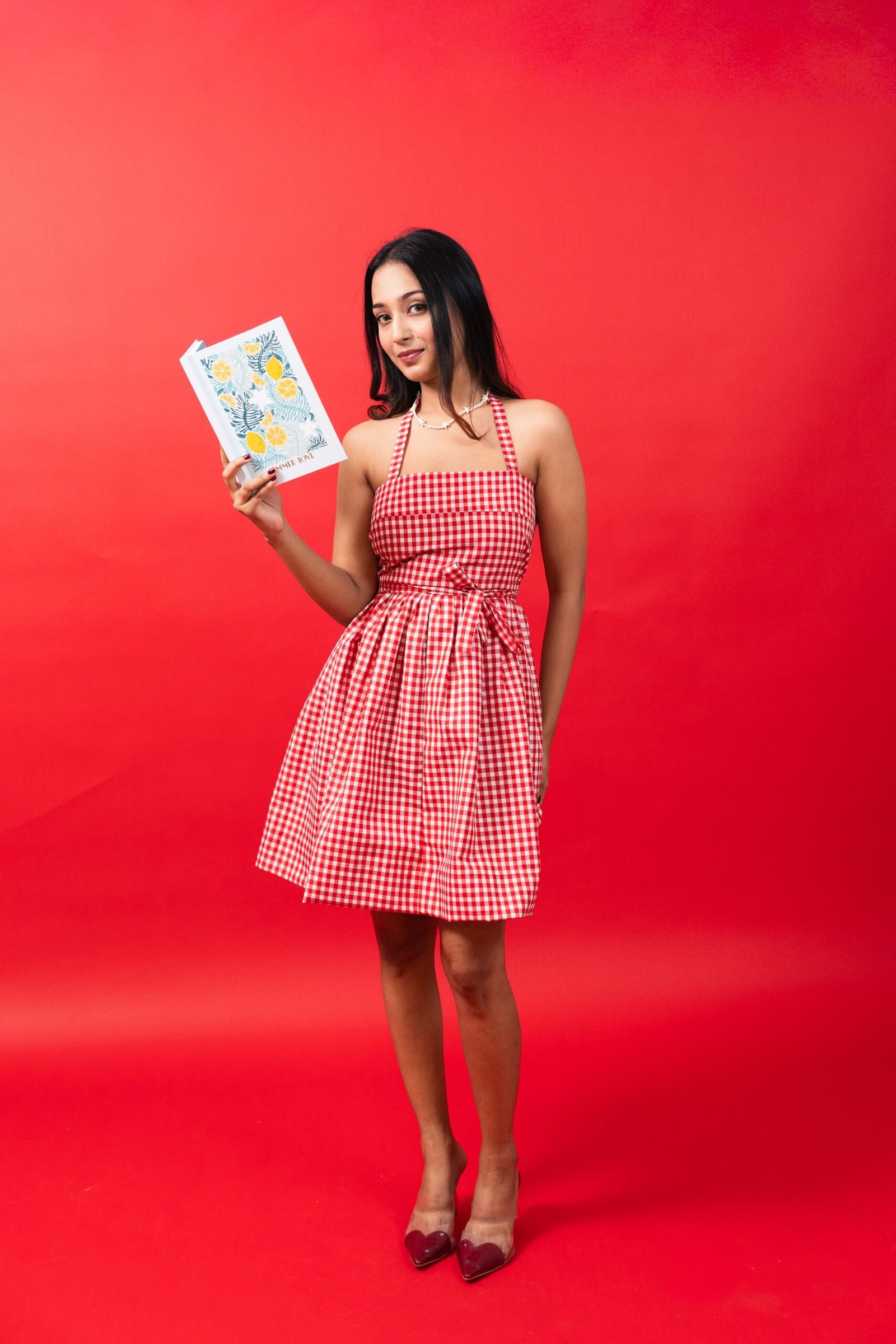 This dreamy Red gingham dress is the epitome of elegance and comfort. Featuring a flattering halter neckline and a flowing silhouette, it radiates effortless charm and grace. Crafted from lightweight, breathable fabric, this breezy dress is perfect for summer outings, brunch dates, or beachside vacations.